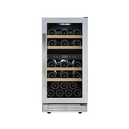 Double layer full view grey glass protects wine from UV rays